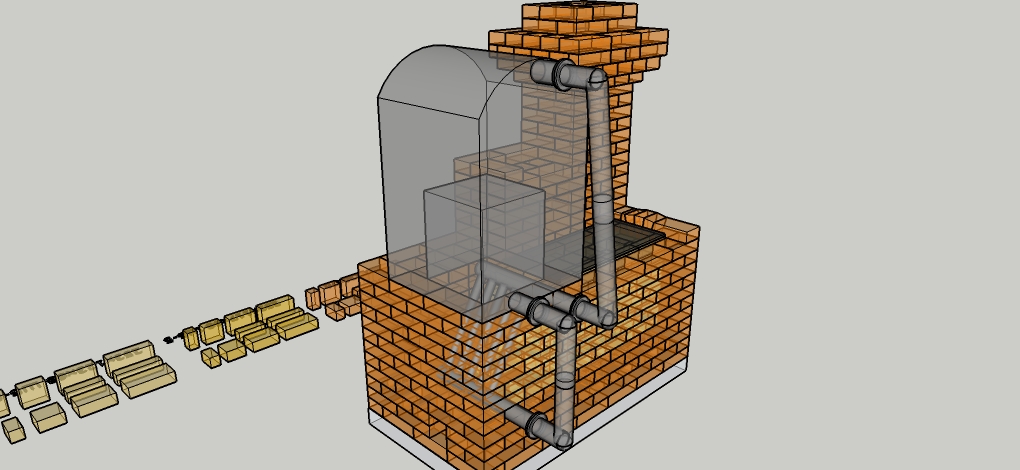 Как вы думаете что можно ожидать от такой компоновки. Я утомился конечно выкладывать нутро топки из шамота на ребро. Но моделька получилась красивой.