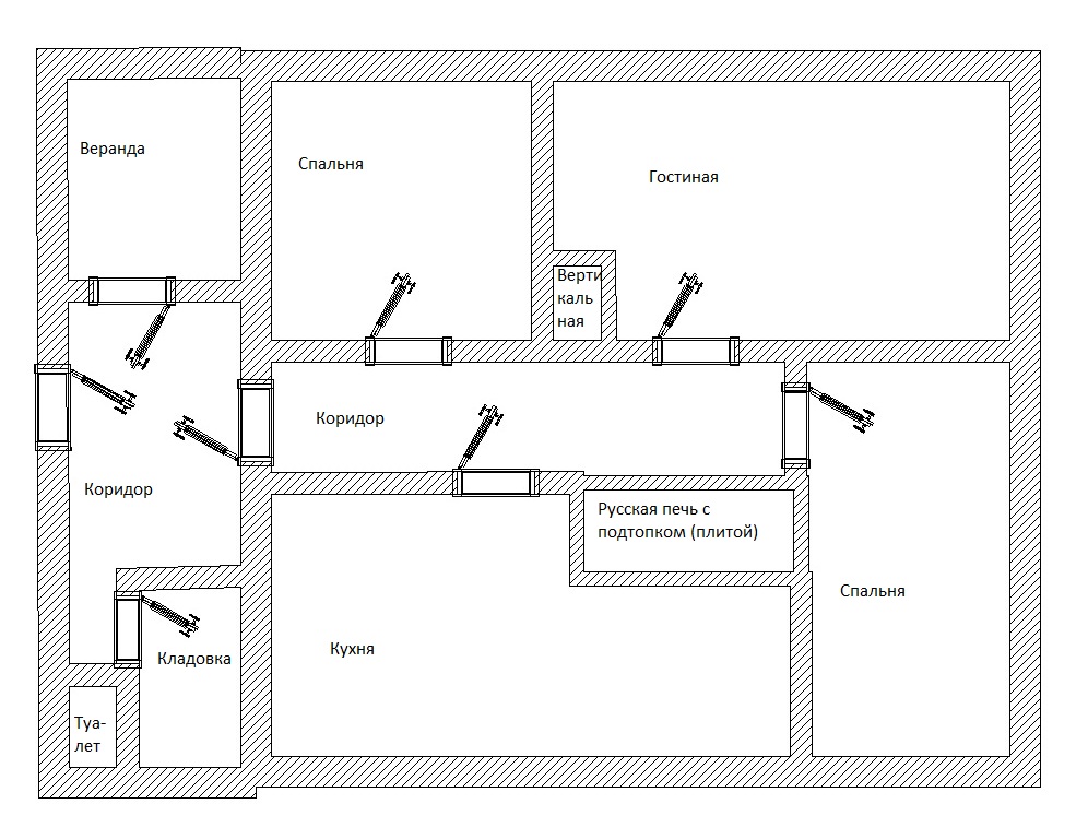 А с другой стороны - гостиную и спальню - обогревает так называемая "вертикальная" печь, она уже очень старая и начала крошиться, ее надо перекладывать. Вот вместо нее я и хочу камино-печь со встроенным котлом.