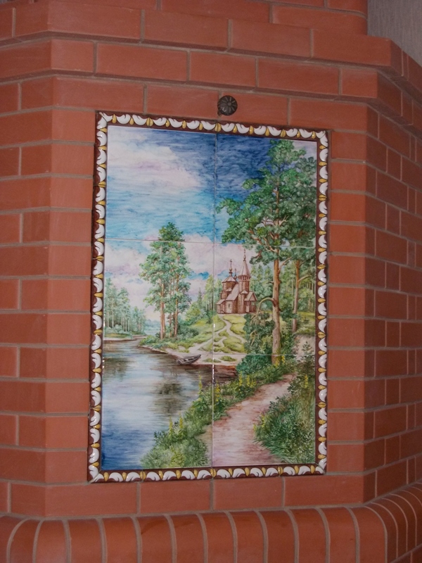Всем привет на майские праздники поставил керамическое панно в каминопечь от фирмы город Кимры Изразцовые печи www.pechy.ru Само панно пришло в посылке все упаковано в виде 3 см керамической плитки как бы изразец без румпы рисунок храм на холме рисовала художница ,также дополнительно была сделано рамка фигурная .
