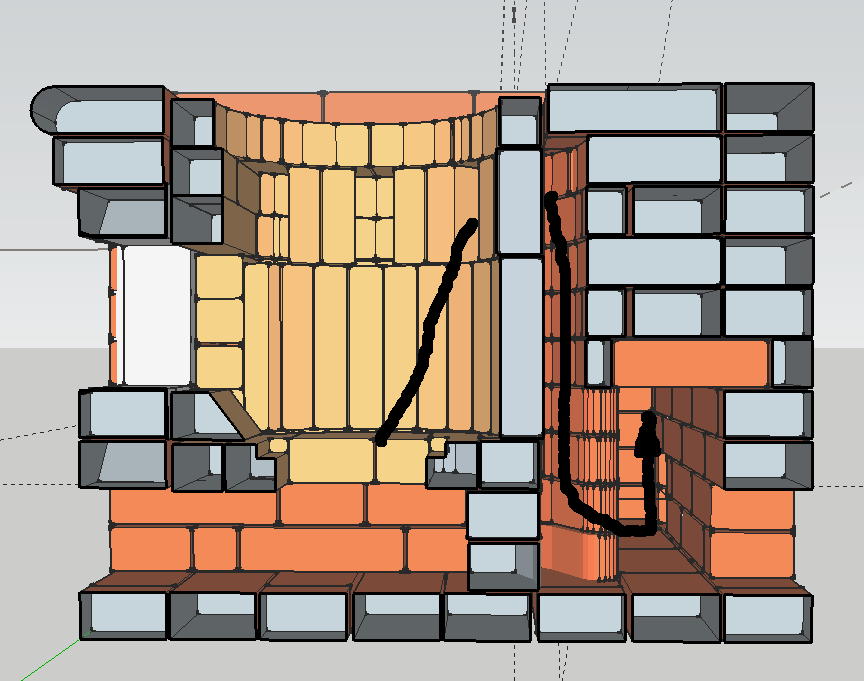 Конечно сейчас я выставил как будет примерно выглядеть топка, если полностью из шамота - одним словом размерность смотрел. А ДК пойдет под ним и в канал и в трубу как в проекте.