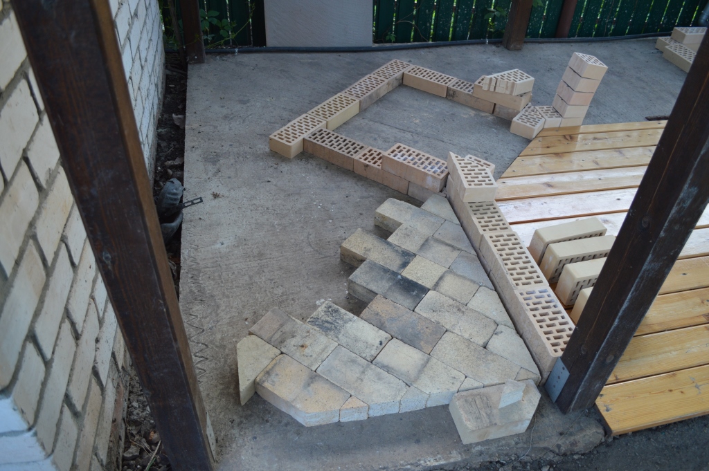 И вот началась стройка. Самым продуктивным был день в воскресенье. Подготовил раскладку и нарезал кирпич на 2 ряда и начал подготавливать арку.