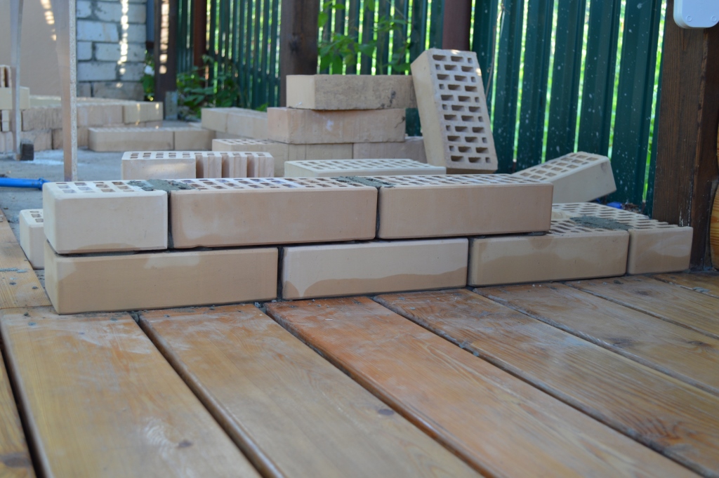И в конце дня попробовал положить несколько кирпичей, думаю получилось не плохо.