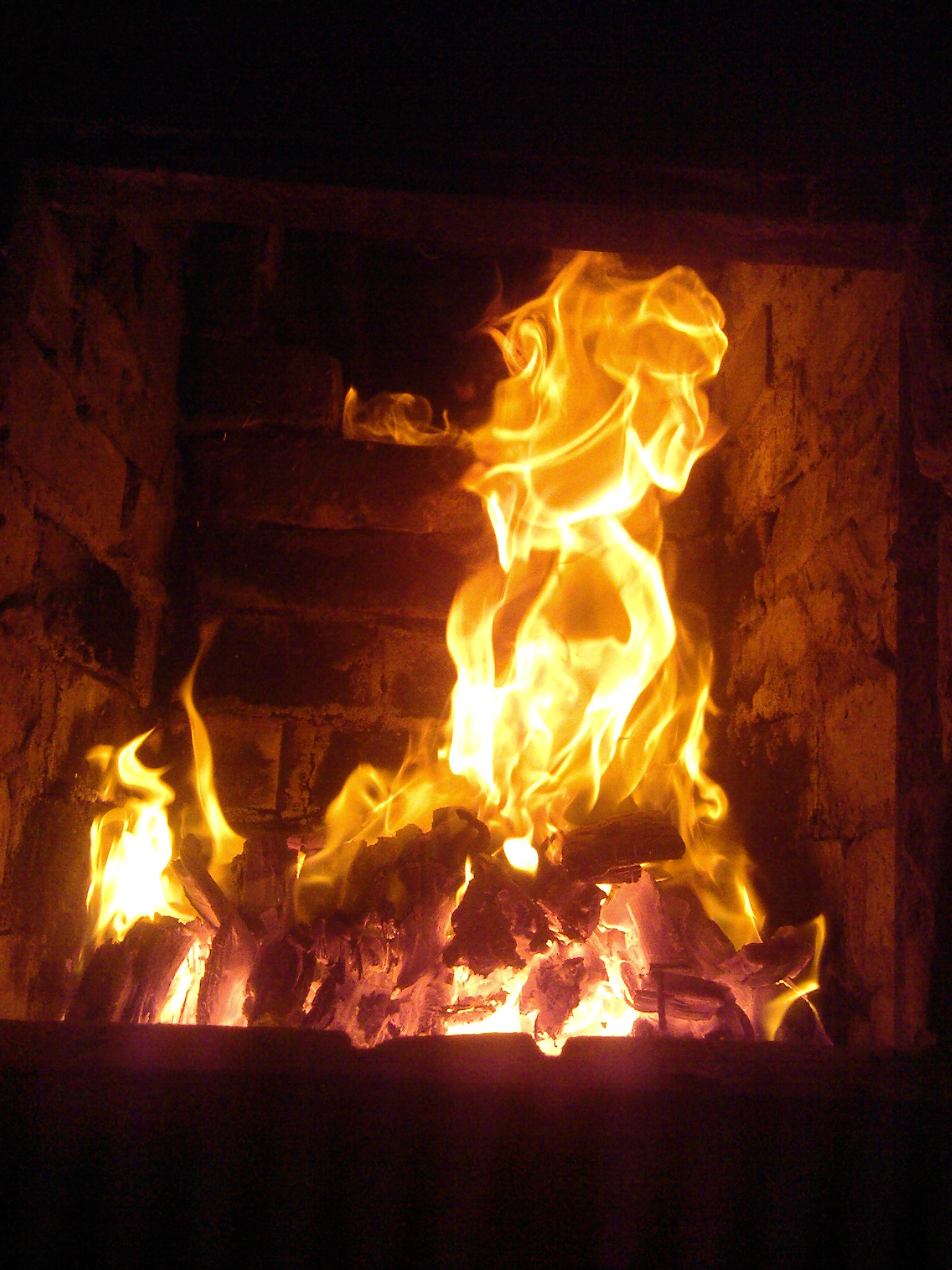 | Горение при открытой верхней дверце и закрытой нижней. При открывании нижней дверцы пламя наполняет всё пространство печки. |