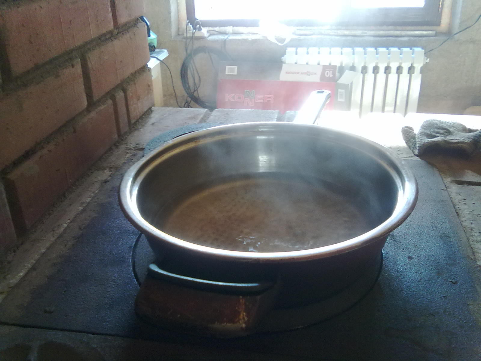 Плита горячая, но вода не закипает чуть чуть, может у меня дрова г... со старых построек сырые?... С другой стороны обычно плита разогревается до красна сжигая при этом воздух, а так умеренное тепло исходит.