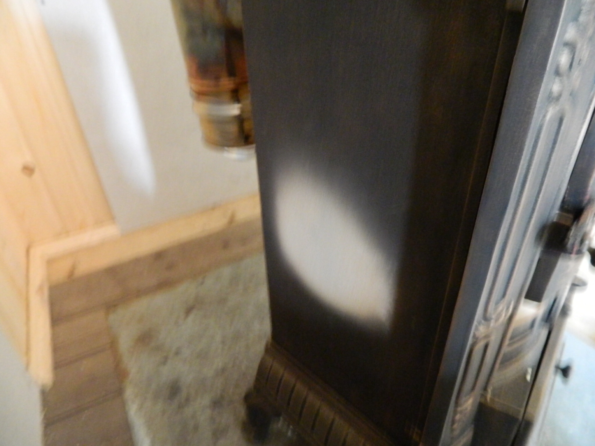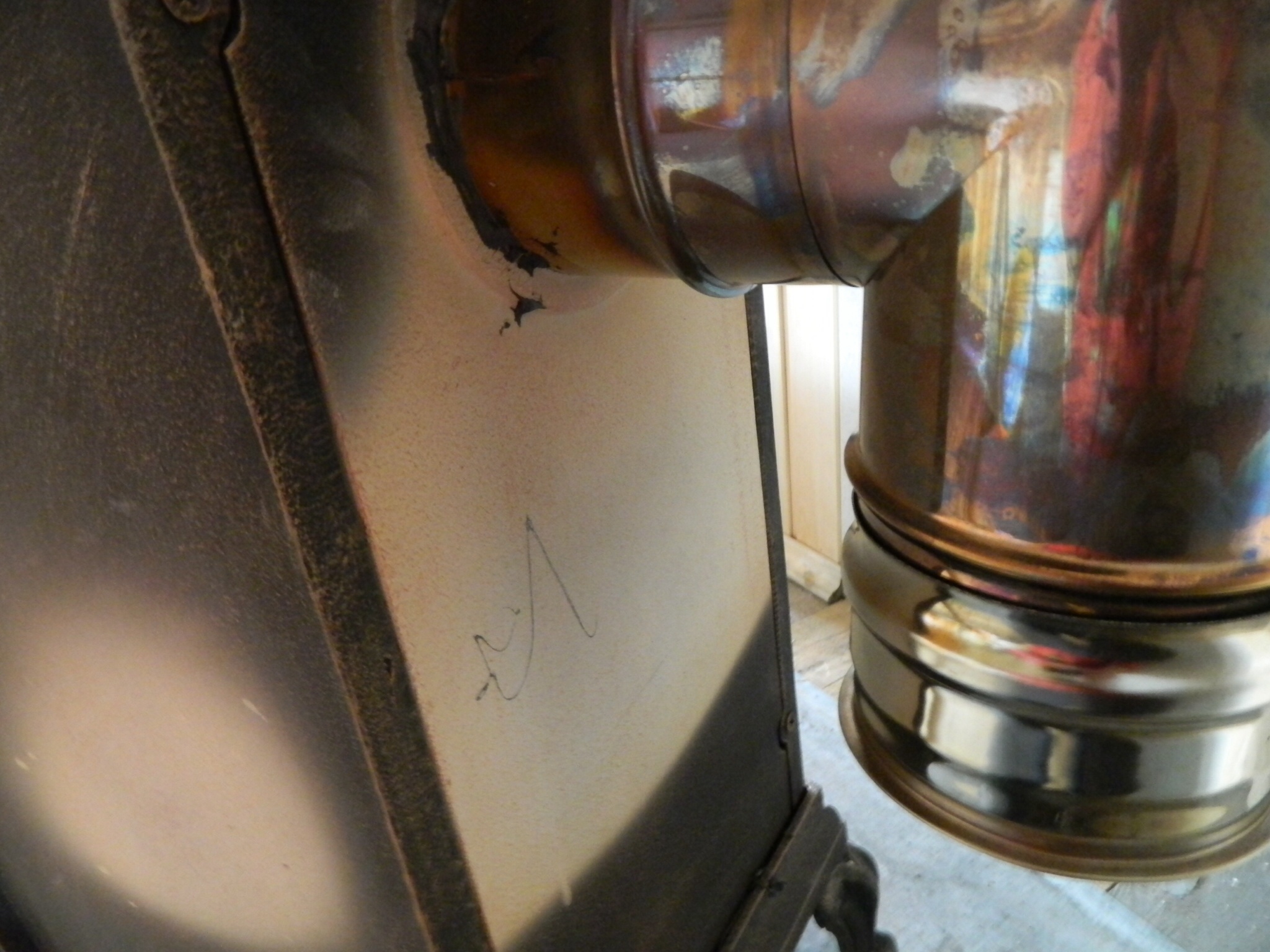 Как вариант, если вдруг задумаете покрасить её заново, или просто больше не перетапливать - включайте обычный вентилятор (без подогрева), направленный на заднюю или боковые стенки, и перегрева не будет, и помещение раза в 2-3 быстрее прогреется.