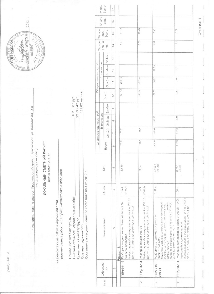 Т.о. оценка эксперта, в нашем случае, проходила на уровне общестроительных норм, а не печных.