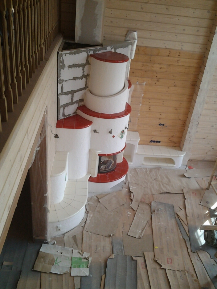 А у меня пока вот такой бюджетный вариант на тему "Гленрич"...заказчик захотел копию))) на оригинал денег не хватат))) Два конвекционных канала в спальни на втором этаже и кухня на первом. Топка Супра, без подпора. Изразцы в процессе изготовления - примерно вот так (фото не умещается - см. след. сообщение), после монтажа выложу.