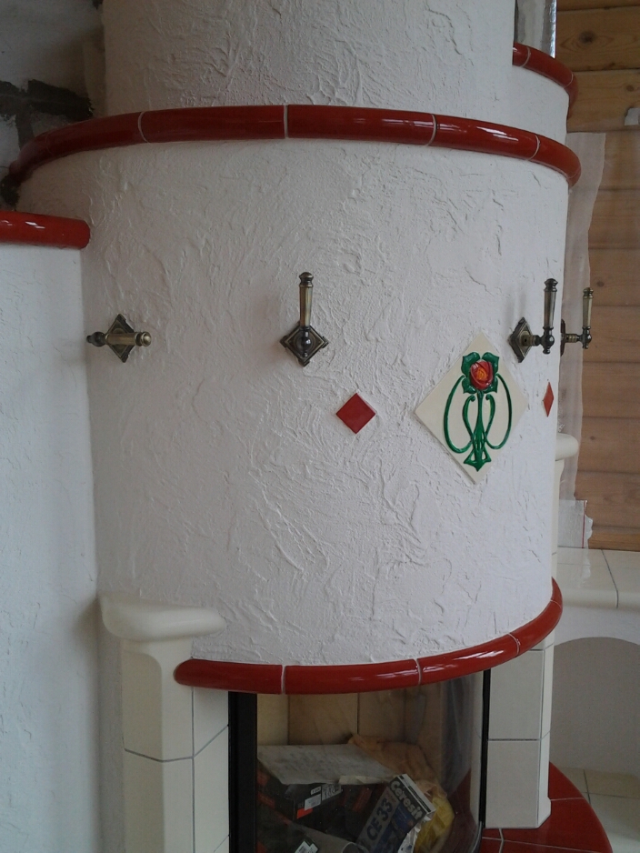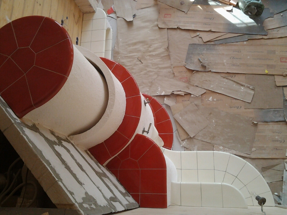 А у меня пока вот такой бюджетный вариант на тему "Гленрич"...заказчик захотел копию))) на оригинал денег не хватат))) Два конвекционных канала в спальни на втором этаже и кухня на первом. Топка Супра, без подпора. Изразцы в процессе изготовления - примерно вот так (фото не умещается - см. след. сообщение), после монтажа выложу.