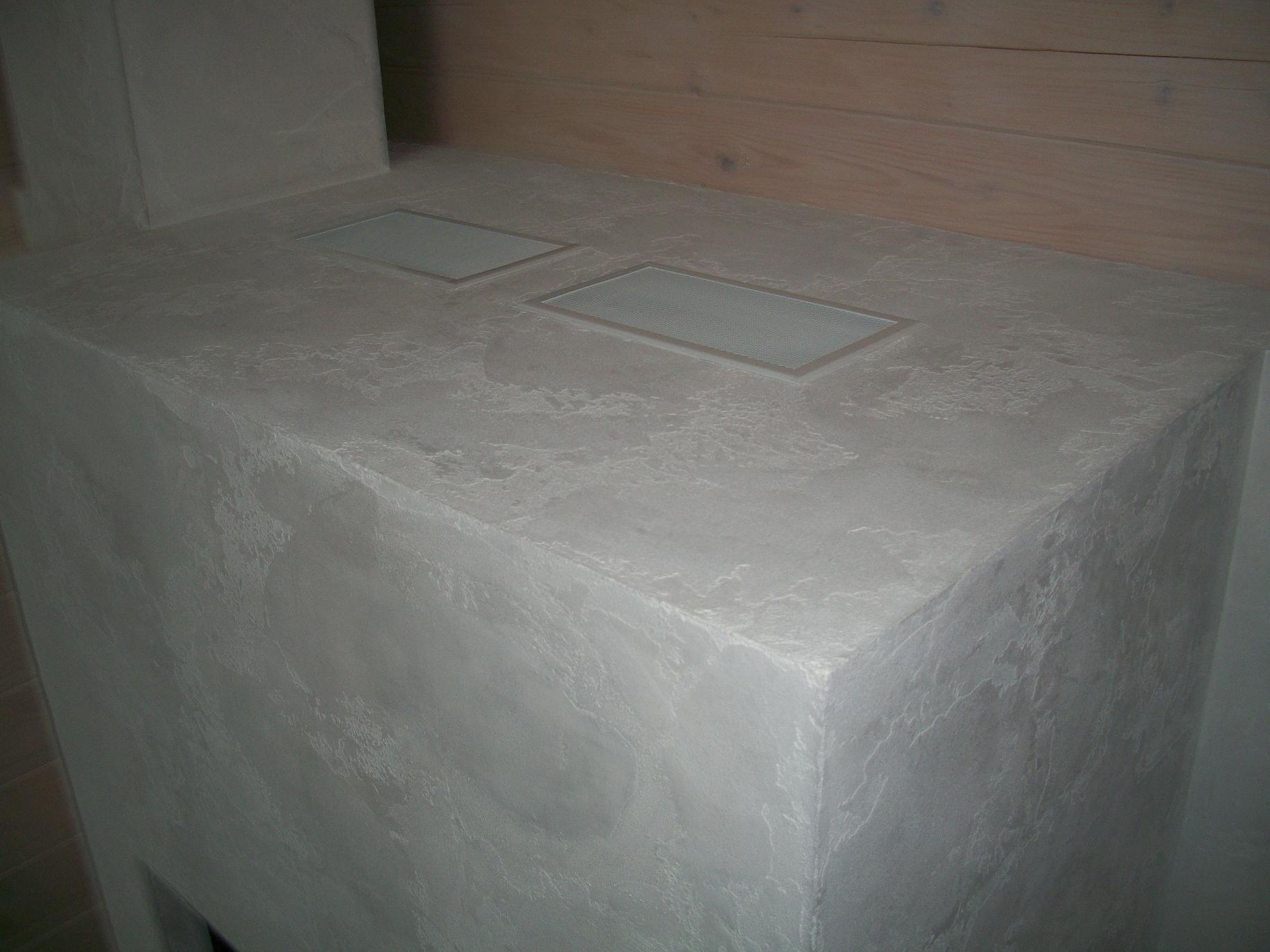 Я делаю так. Обязательно! Весь конструктив затягивается сварной металлической сеткой. После этого грунтуется из пульверизатора мокрым по мокрому. После высыхания грунта штукатурится геометрия с помощью Ротбанда с применением штукатурной сетки. Далее, опять грунтуется. Финишная отделка делается Моделирпутцом фирмы Дюфа. Прекрасный материал, который никогда не треснет. Фактуру можно сделать любую, всё зависит от умения и фантазии.