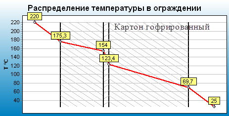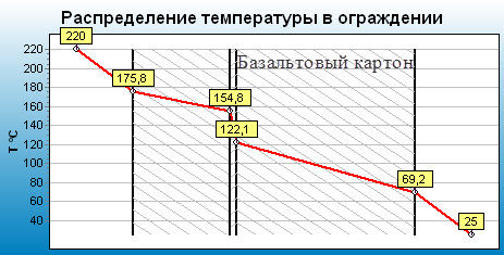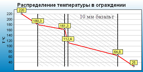 Запустил ноут и сделал эпюры распределения температур в ограждение: