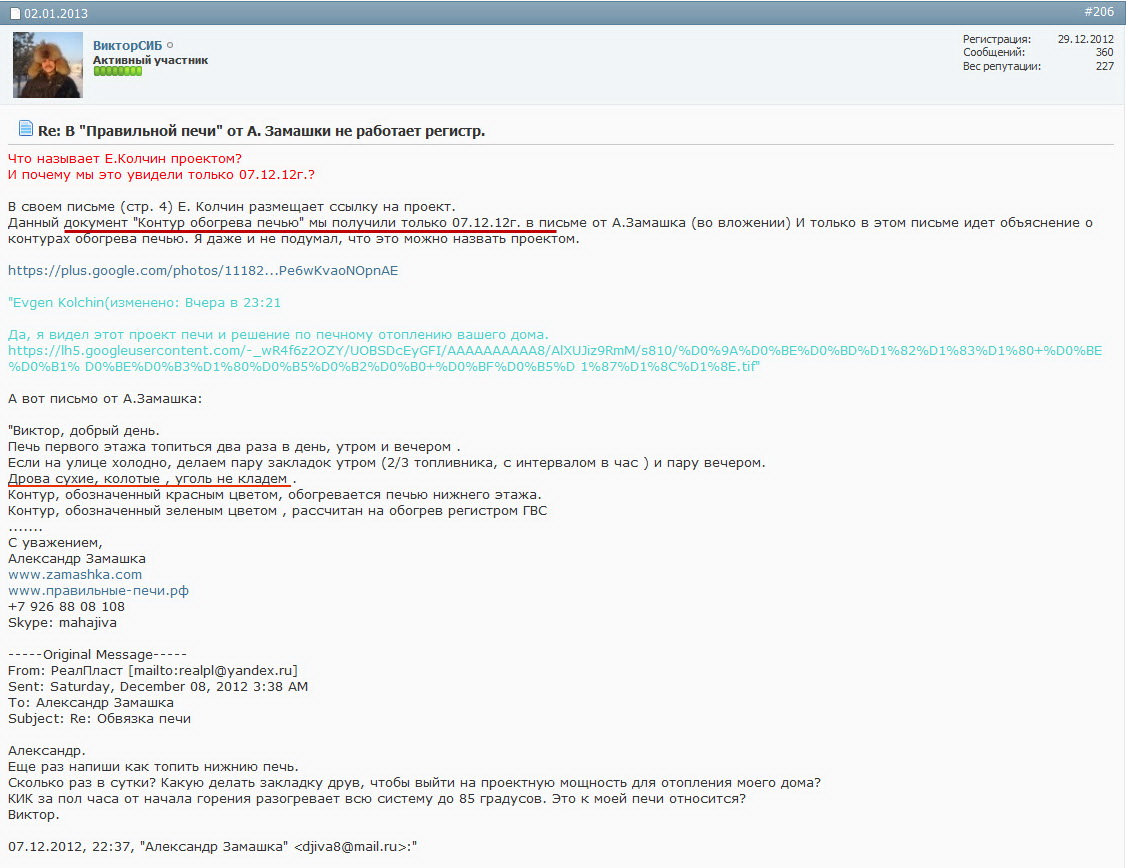 *сканы текстов -сообщения от заказчика и пользователей при обсуждение "проблем" с печью в 2013 году