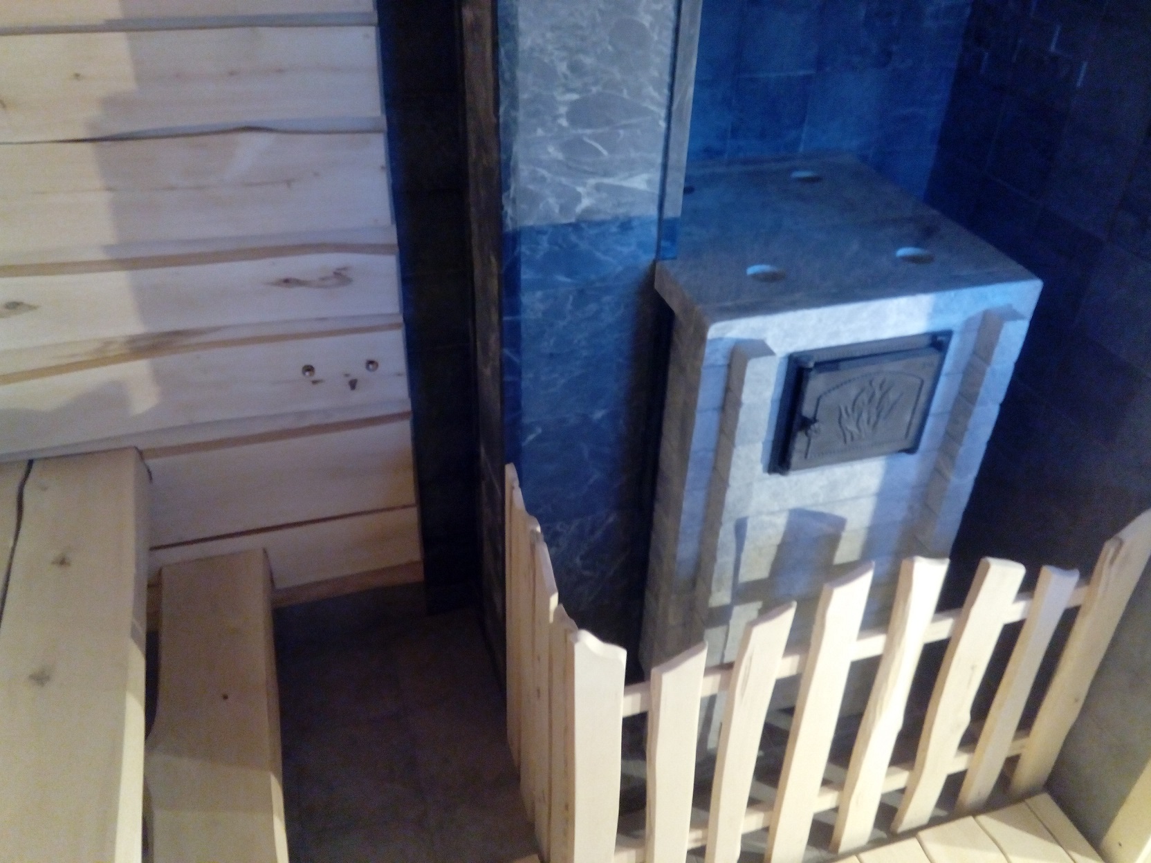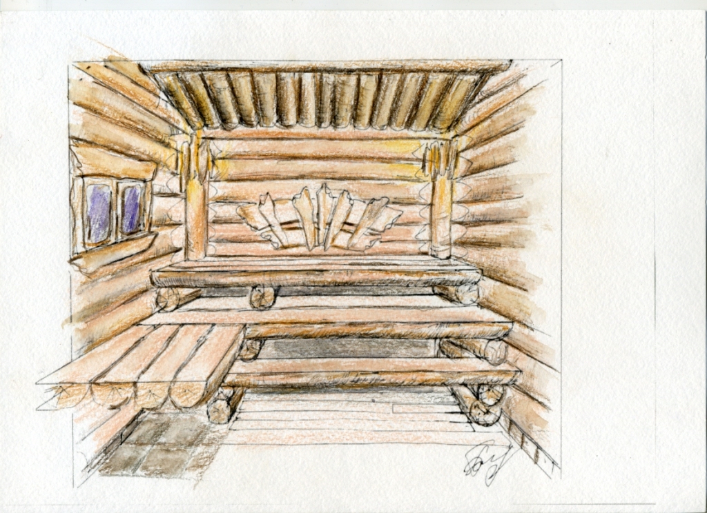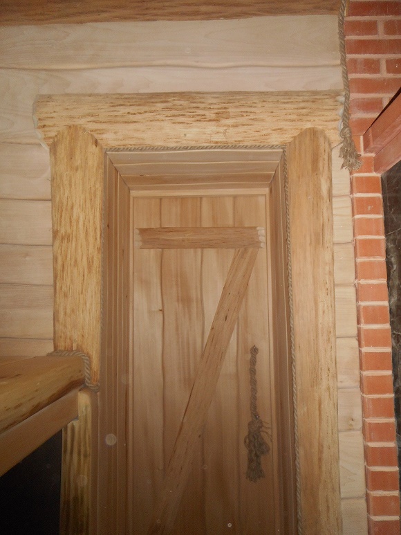 А для отделки этой парной использовал тесненную липовую доску и полубревно липа с чЁсом(лыко). Ну и пробкавая капсула в качестве утепления и пароизоляции.