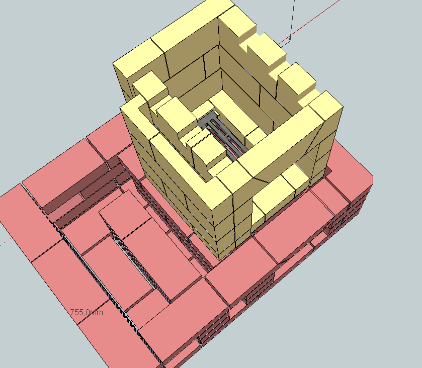 У меня ситуация такова: я строю каркасную баню, размер 4,1х5,6 м. Изначально я хотел сделать щиток по образу Сергея (5_6) с форумхауса. И фундамент под это залил. Но потом понял, что комната отдыха греться не будет. Электричеством обогреться нереально, напряжение до 120 падает зимой. Т.е. нужен какой то отопительный прибор. Буржуйку ставить не хочется, дети мелкие могут обжечься. Да и комната отдыха планируется как гостевая, т.е. обогревательный прибор нужен достаточно теплоемкий, чтобы к утру температура не сильно падала. К тому же такого быстрого прогрева как от буржуйки не требуется, поскольку рядом теплый дом. Поэтому остановился на кирпичной печке совмещенной с щитком для МП. Но печка нужна не очень большая, поскольку площадь комнаты отдыха порядка 11 м2. Сначала думал ОИК14 и щиток рядом, в трубе объединяются. Но уж больно топка у ОИК14 маленькая, дрова вертикально ставить. Как то не привычно. Тему про Г-образный щиток на форумхаусе тоже прочитал, но у меня конфигурация другая. В общем весь в раздумьях. А потом натнулся на эту Вашу печку размером 3х3. Для меня самое то. Размер топки тоже устраивает, все равно для МП дрова меньшего размера пилить. Если ввести трубу от МП слева чуть ниже колпака будут ли эти печки мешать друг другу, когда топятся обе? Тепло от МП в этом случае будет греть только колпак. Но его наверное на большее и не хватит. МП - малютка Ферингер.