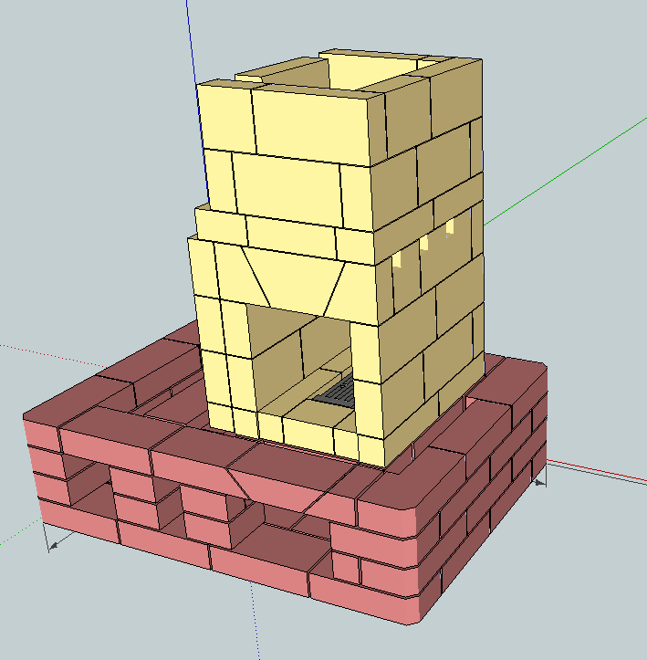 1. (Смотри фото - левая часть) На 8-мом уровне шамотной кладки, боковые отверстия (помеченные стрелками), как я понимаю для ВВ, перекрыты кирпичом, стоящем на ребре. Что делать с этим? передвинуть кирпич правее? Но тогда от закроет зазор. ведущий из камеры горения (выделено окружностью.) Или лучше перенести эти отверстия в ту или иную сторону?