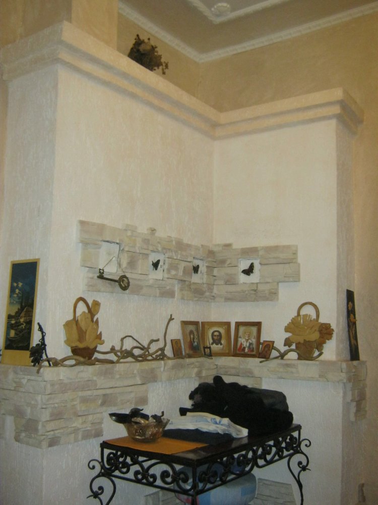 Щиток -печь на угле с другой стороны. Где черные бабочки -прочистные дверки. Низ в пол кирпича .верх -ребро с четвертью. трубу -видно. Одесская обл. 1970г. постройки. Щиток с лица -ровный ,в спальнях выпирает. Но есть и обратный момент. Щиток выпирает в холл. Сейчас вместо печей на угле -делаем поддовые под дрова. Дверки из металла / У народа нема -золотого запаса./ Щитки под уголь -на дровах работают -отлично. Даже лучше. На снимке Т. но одну часть не видно.В другой спальне.