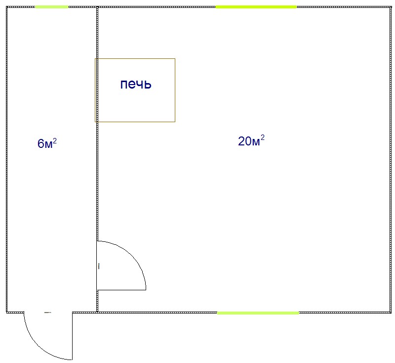 Здравствуйте, уважаемые форумчане. Имеется пристройка к основному жилищу, комната с корридором. Прошу совета по выбору отопительной печи. Необходимая информащия о пристройке во вложении.