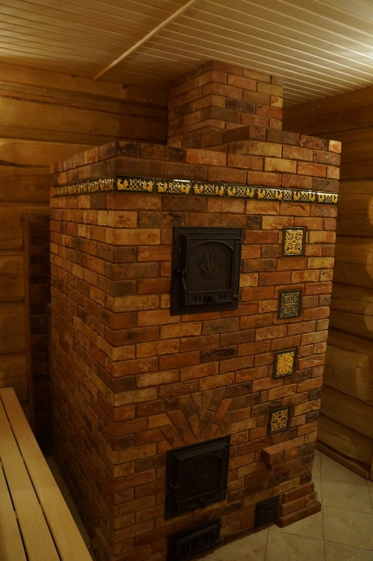 Кирпич ручной формовки нужно футеровать шамотом а изразцы в бане не ставил точно не подскажу наверное классический способ проволка-кастыли. Банная печь под старину можно стилизовать и витебским колотым кирпичем найти бу старый царский с клеймами . В данный момент себе так сделал дешево и сердито чем не дремучая старина повешу подковы, чугунные скобы, амбарные замки ,дубовые двери .