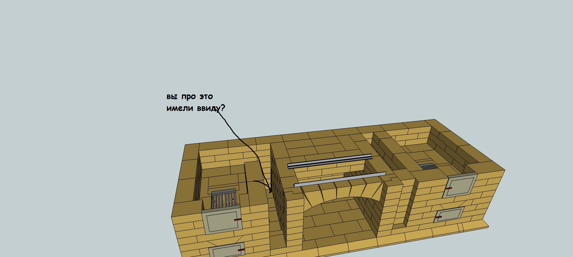 Валентин, посмотри скриншот. Про низ подвертки, я не понял. Я так понимаю, это про проем поддувала с зольником? Про стенки я понял уменьшу их, чтобы не торчали из под плиты, либо я поставлю на 750