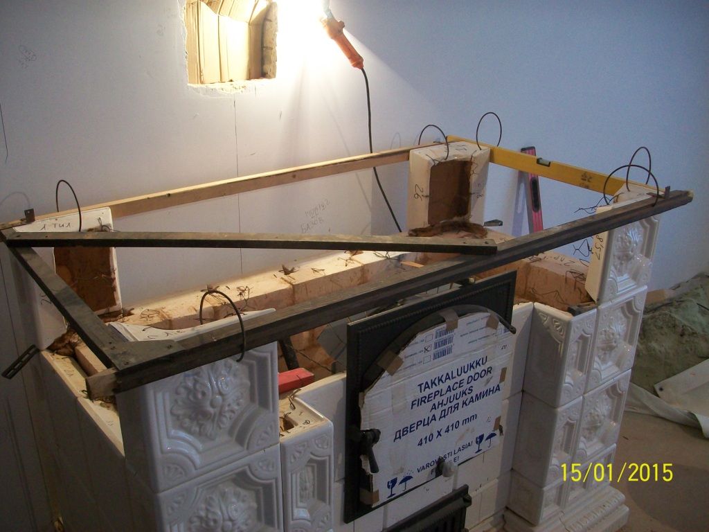Что касается геометрии: Угловой кафель по высоте на 5 мм больший, чем рядовой. Угловой кафель выставлял первым насухо, прирезая низ выставлял по вертикали, затем прирезал верх до высоты рядового + горизонталь. Использовал приспособления. Ниже технические моменты по строительству печи на фото 3.jpg