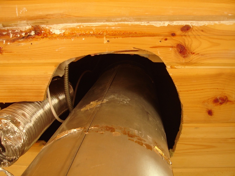 на открытый шибер села внутренняя часть трубы-сендвича