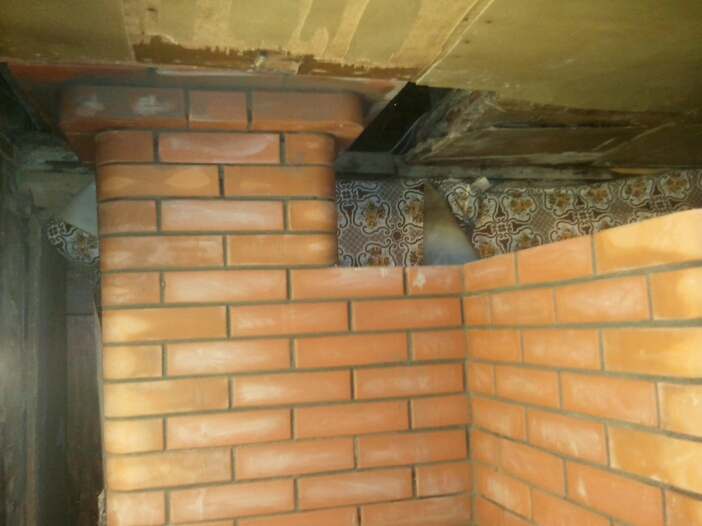 По трещинам ..они есть как и говорили в районе хайла слева не большая..тут как и говорили саммое теплонагруженное место и перевязка керпичей.с ядром.