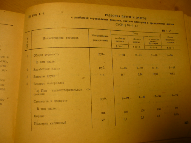 Да такой бы сборничек с новыми расценками на печные работы адоптироваными под наше время на новый год 2016 заверен важными дядями печатими сылками на Госты Снипы и т.д Такой бы прейскурант цен как в ресторане дисциплинировал возможно заказчиков человек сам может просчитать оценить свои возможности. Хотя для печников не очень хороший расклад гнать кубы как на стройке дома под шаблон тоже тупиковая ветвь. Но тут демпинг возможно отвалилсяи конкуренции не было. Веселое наверное тогда в СССР время было жалко теперь такие веще уже раритет только в музеи лежать. ЖАЛЬ что можно говорить про замену вьюшки если печь почистить разброс цен от 500 руб до цены всей печи с материалами под ключ. КАПИТАЛИЗМ и АНАРХИЯ однако !!!!