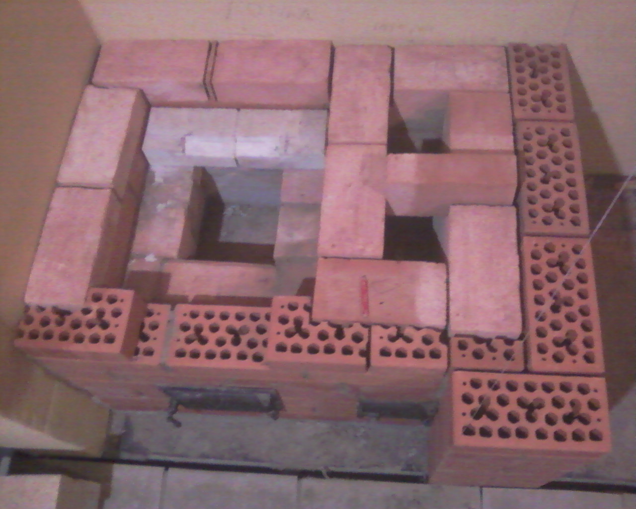 На фото 0196 видно, что на шамотном кирпиче будут гореть угли (600-700 С). Через сантиметровый зазор все будет передано пустотелому кирпичу облицовки? Кстати этот зазор заполнять раствором нельзя. Шамот имеет больший коэффициент теплового расширения. Видел разрушенный пустотелый кирпич в такой конструкции. В щель был вставлен базальтовый картон толщиной 5 мм. В печке в течении месяца ежедневно варили плов.