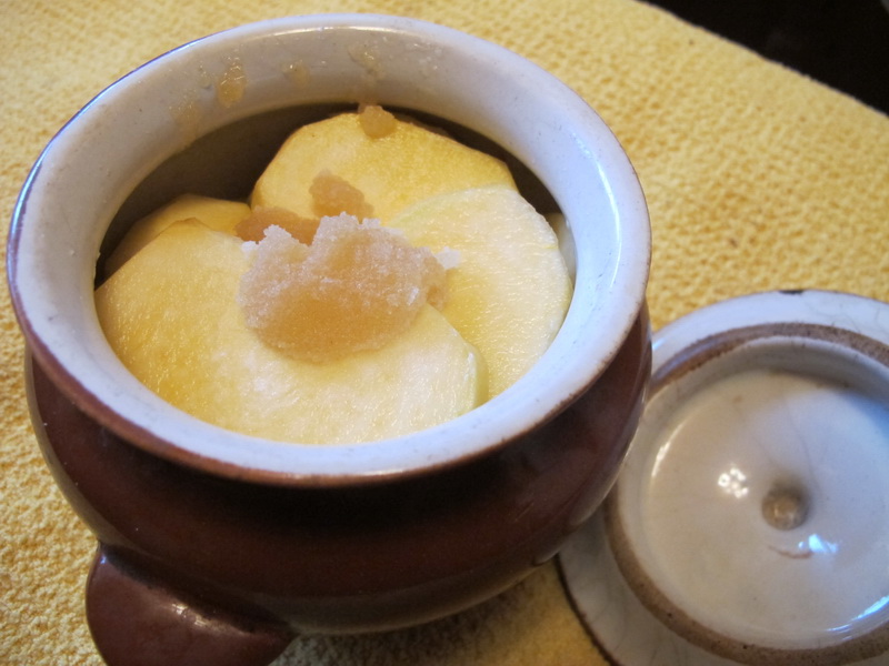 между котлетами дольки яблока