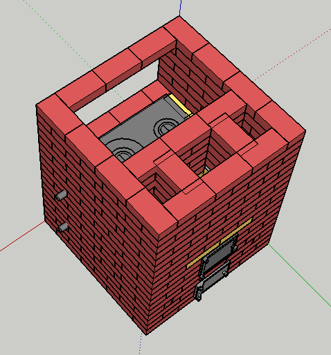 Пока я повертел кирпичи: мощная печь на два этажа с котлом и плитой выходит только если размер 4х4,5 кирпича, ито хреновая маленькая плита "ни в п*** ни в красную армию" с отдельной топкой