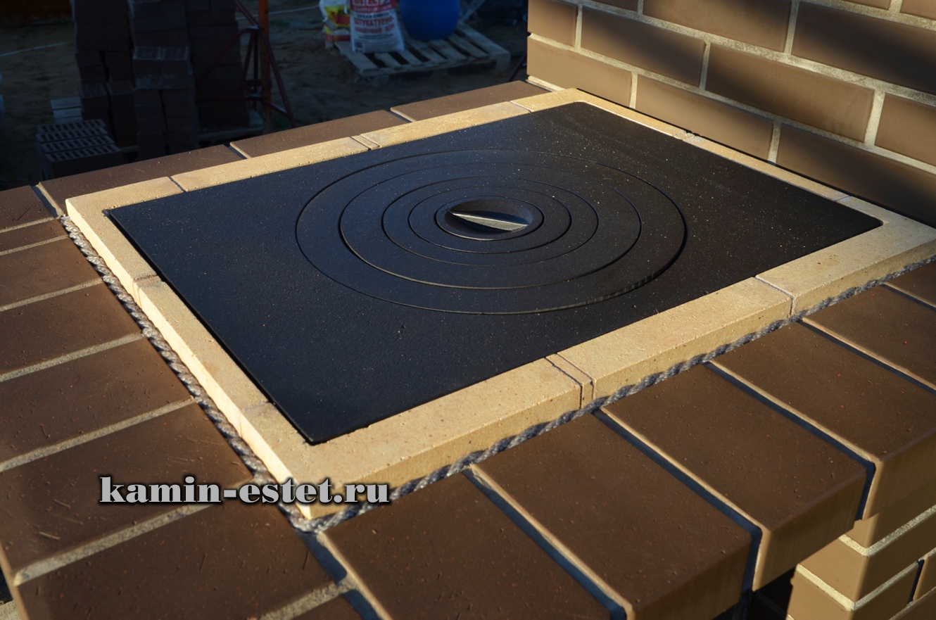 Достойная работа. Да и так все, по моему, понятно. Гарантировано от перегрева облицовки. И смотрится красиво. Нет проблем с трещинообразованием в районе состыковки барбекю с дымоходом от плиты? Имеет ли плита опускной дымоход или действует напрямую вверх?