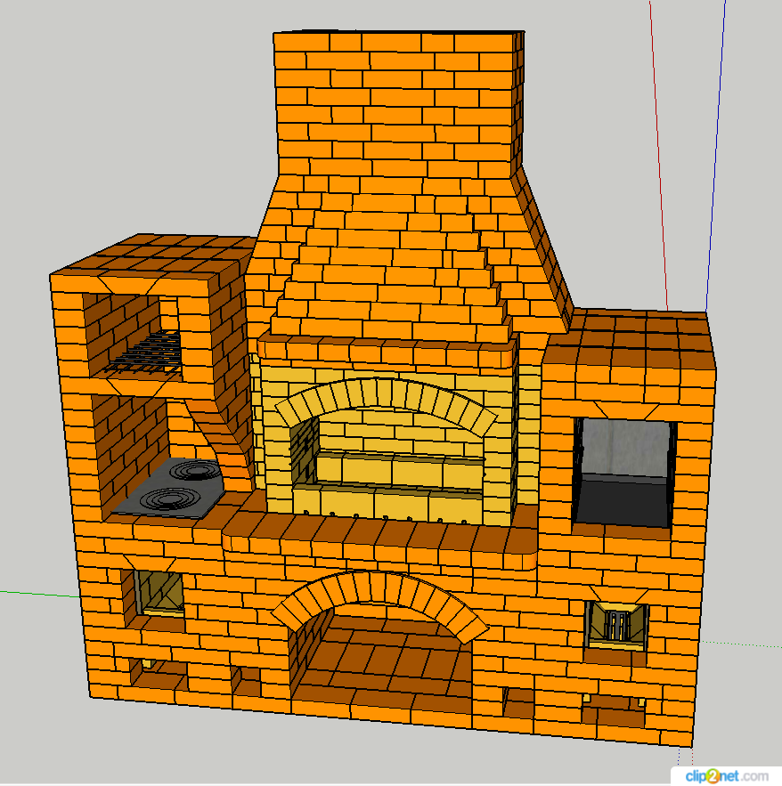 Дверцы и топки специально скрыл, чтобы "внутренности" было видно.