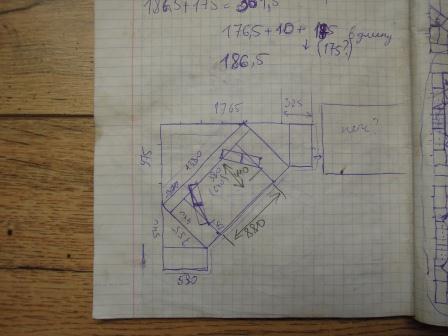 Не уверен, что все размеры правильно рассчитал. Угловой камин с трапециевидной формой пода (пожелание хозяина), с дровницей, для помещения 5х5,6м (28 кв.м.) с высотой потолка 2,57 м.