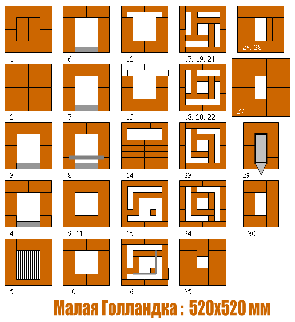 Это на всякий случай, для облегчения. Я ведь не знаю, какой именно вы выбрали вариант с колосником. Поэтому нарисовал с 15 ряда к схеме интернет-печника.