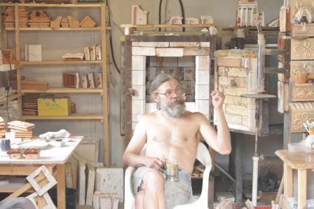 привожу глину с карьера,замачиваю водой. Через несколько дней размешиваю в мешалке, потом проливаю через крупное сито. Затем,эту массу наливаю в деревянные корыта,проложенные бельдингом и даю отстояться. После этого готовлю массу( смешиваю с песком и шамотом в нужных мне пропорциях) и закладываю в пресс. Потом еще обезвоживаю на гипсовых плитах.