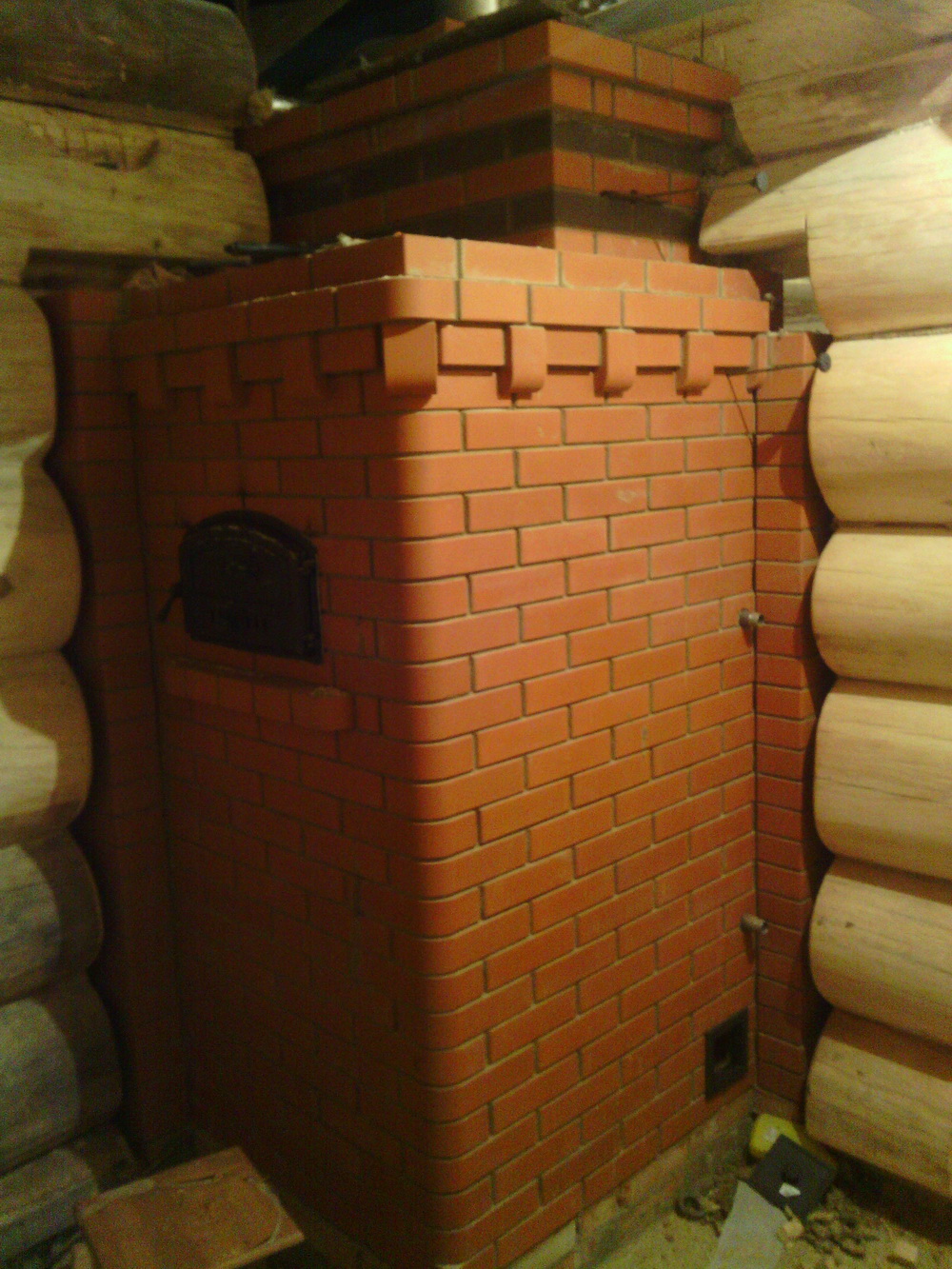 | Все минусы в кладке кирпича на ребро в банной печи,через год эксплуатации покажите внутренность! |