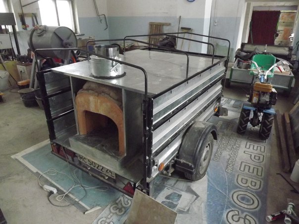 К вопросу печи на колесах в Европе такое есть Слово КЕЙТЕРИНГ (англ. catering от cater — «поставлять провизию») — отрасль общественного питания, связанная с оказанием услуг на удалённых точках, включающая все предприятия и службы, оказывающие подрядные услуги по организации питания сотрудников компаний и частных лиц в помещении и на выездном обслуживании, а также осуществляющих обслуживание мероприятий различного назначения и розничную продажу готовой кулинарной продукции. Эту идею бизнеса реализовал Дуг Коффин из Нью Хевена штат Коннектикут США. Все началось с того, что Дуг, уже имея приличный опыт в кейтеринговых делах, решил организовать что-то необычное, с чем можно было бы выделиться на рынке кейтеринговых услуг. Ему пришла в голову идея сделать пиццерию на колесах, т.е. чтобы пиццерия была мобильной. Так он обзавелся стареньким, антикварным грузовичком 1946 года выпуска и оборудовал его кузов мобильной пиццерией. Кузов оборудован специальной для приготовления пиццы печью на дровах, а также различными приспособлениями: кофе машиной, машиной для приготовления мороженого, кулерами с горячей и холодной водой.