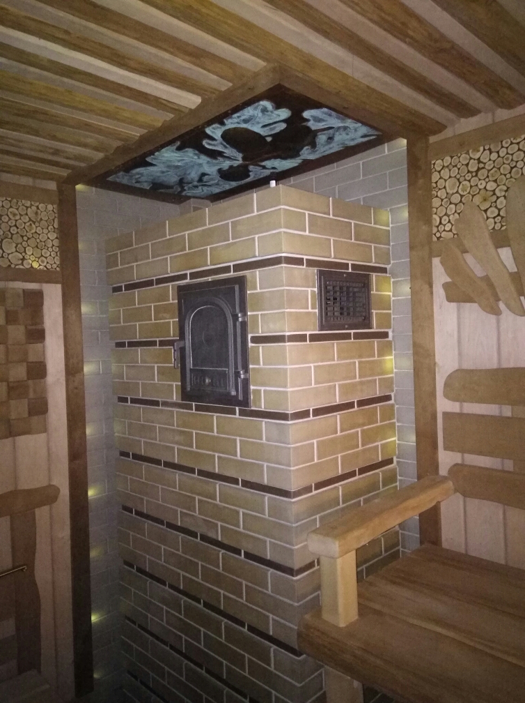Второй ярус, рабочее место банщика имеет возможность для парения лежащего на полке в 4 руки. Т.е. 2ва банщика работают одновременно с одним человеком пропаривая его "до косточек" . В этой бане было реализовано много новшеств. Отдельно скажу про свет - скрытая подсветка из термостойких осветительных приборов оказалась очень трудоемка в монтаже. После окончания всех работ. Мы провели заказчику запуск парной и первое парение. Пригласив проф. банщика Петра Соколана. По результатам этого тэстового - первого парения проф. банщик оставил хороший отзыв о работе печи и удобству работы в этой парной в стиле "экомассив". Коллективная работа над проектом дала свой положительный результат!