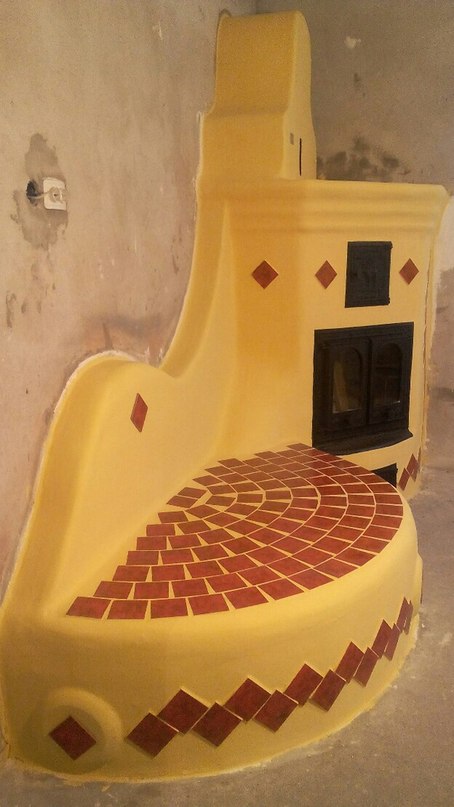Модификация Калининградских печников ракетный печи под европейский стиль . Ребята молодцы !!! Сделали каркас из полнотелого кирпича полугруглой формы и нанесли штукатурку .
