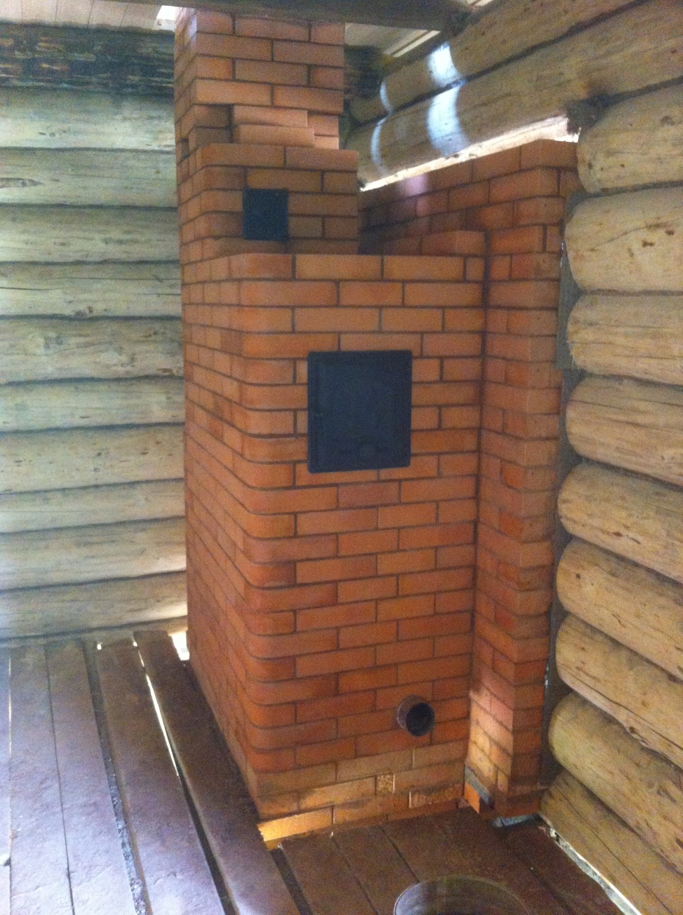 фотографировал ещё на стадии проектирования и подбора, но сегодняшняя не слишком различается. Болванки не круглые, а чуть приплюснутые, как бы овальные. Они так более устойчивей. На них проще установить плиту, чтоб при поддаче воды при банных процедура не попасть на кирпичную кладку, да и камни на таких расположить удобнее. Расползаться не будут. В общем исключаем любое воздействие и давление на стенки печи.