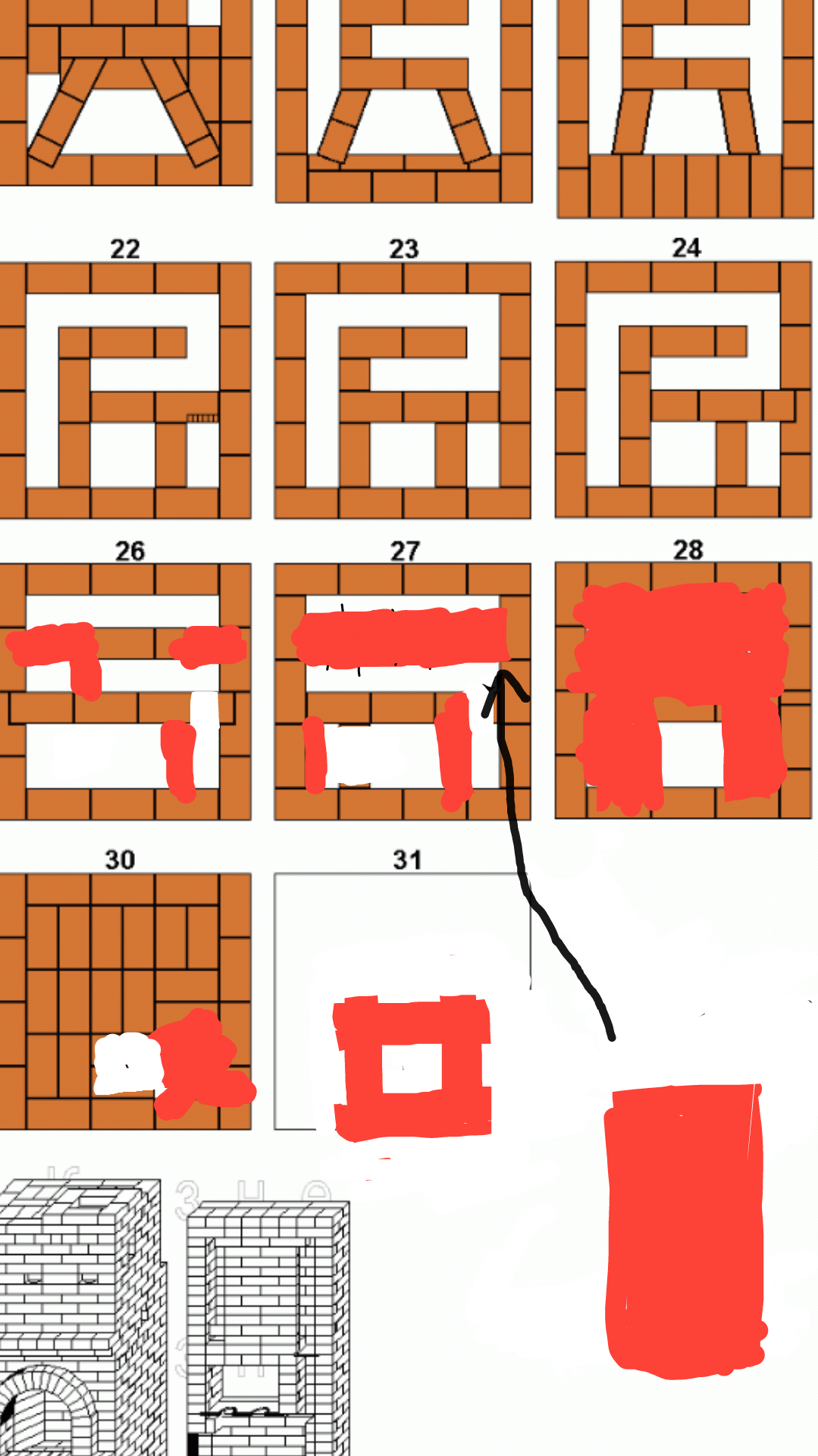 Эта порядовка, которую скачал здесь на форуме. Если я правильно понял, все до 25 ряда оставляю. А там уже поиграв в "шахматы", подгоняю отверстие дымохода к середине края камина
