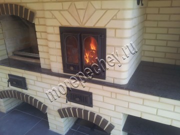 Рп согласен больше напоминает Хк или как ее чаще стали называть псевдо русскую проект переиграли ставка на декор .Да и место выделили больше для казана так плита 750 мм +хотелка большая обзорная двухстворчитая дверка завысила рядность .В итоге такая комбинация на данный момент в режиме сушки и ждет дальнейшей отделки . Конструтив по РП приближен почти от сюда http://forum.stovemaster.ru/viewtopic.php?t=6194