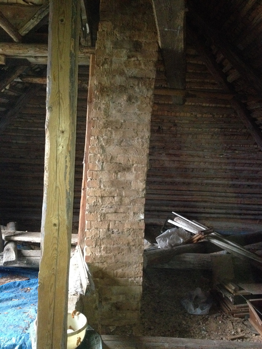 Размер печи (по моим замерам. отличается от БТИ) : 1,52*1,52*1,87 (метра). Внешний размер трубы на чердаке: 0,52*0,52 (метра)