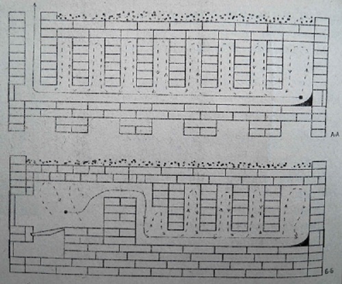 Опускные в щитке футерованы энгельсовским. Лежанка без футеровки, перекрыта 3-мя рядами.
