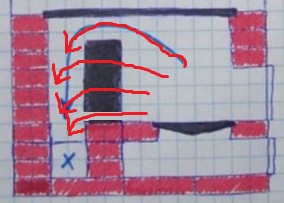 Сейчас у меня стоит котел в виде паралелепипеда сзади топки. Его размеры 250х120х350. Вот разрез печи, которая стоит сейчас