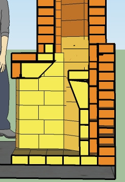 Можно конечно попытаться организовать здесь схему Румфорда, сдвинув целиком трубу с дымосборником на полкирпича влево (по рисунку). Но ..... ?