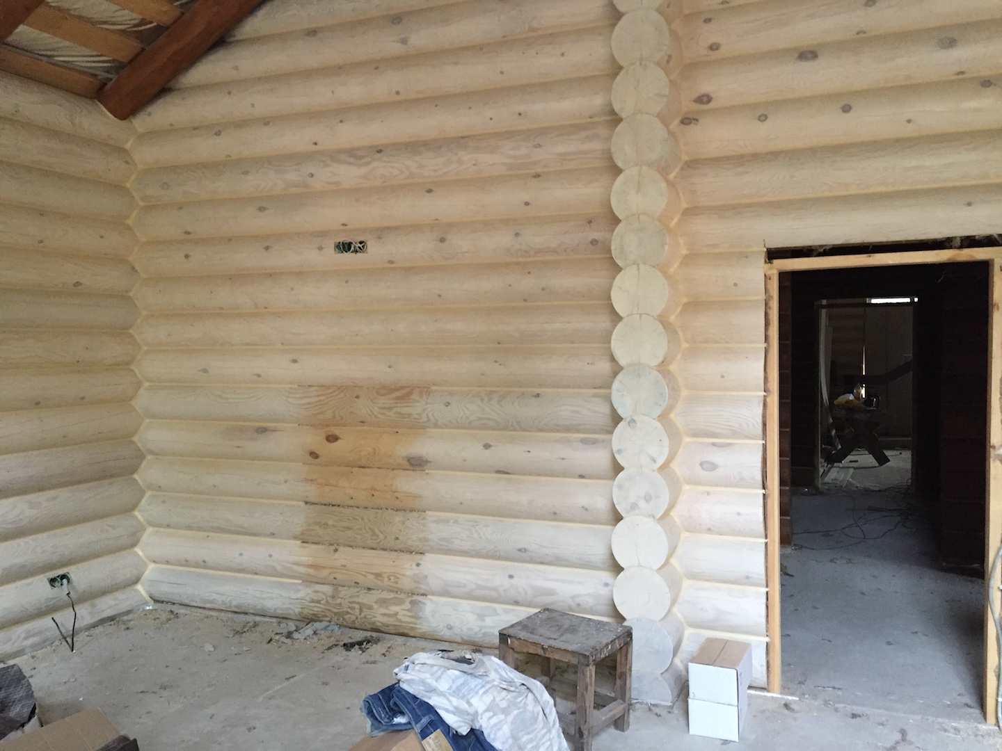 Вид из парилки -наклонная стенка каменки.