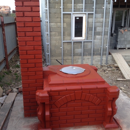 Фото нутрянки пока не могу сделать, объект далеко за городом, однако могу сказать что, топка глубиной 700 мм., и она круглая, диаметр 600 мм. Канал сделан 500 мм. от пода, в полкирпича. На днях поеду и попробую с заказчиком прилепить лепешки на кирпич. Сделаю фото и выложу.