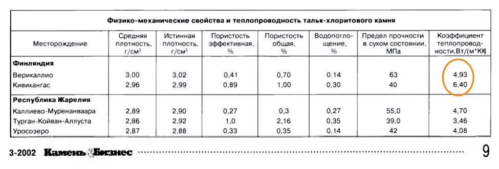 К вопросу, откуда у финских производителей в презентациях теплопроводность 6 вт/м*к см. вложение сравнений характеристик камня. Это исследования наших ученых, в том числе В.Соколова. Ни один из представителей финских поставщиков в РФ - т.н. дилеры Tulikivi и Nunnauuni, не смогли мне дать официальных документов, подтверждающих свойства их камня в печах. По всей видимости, этих данных просто нет (!) ... у представителей ))