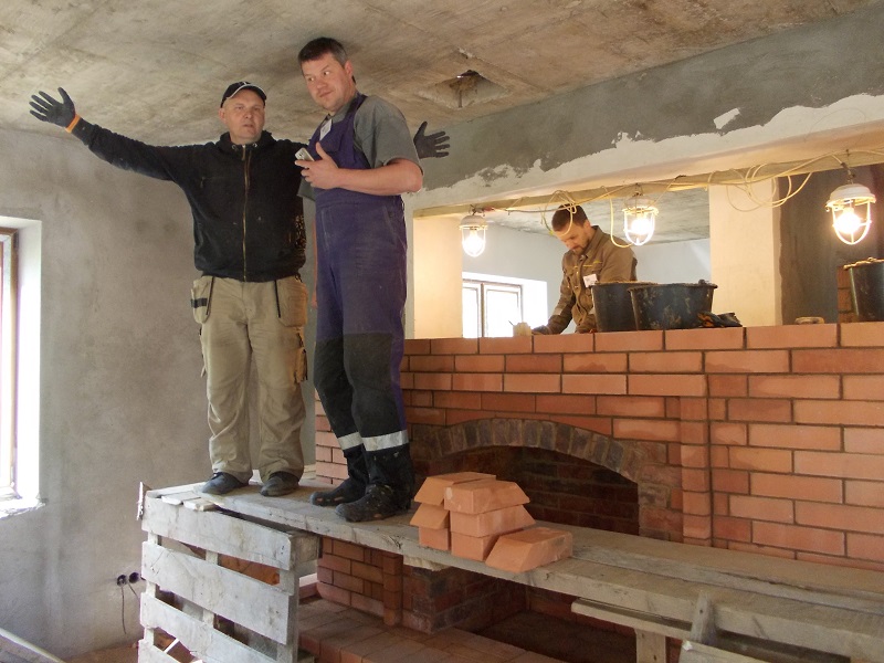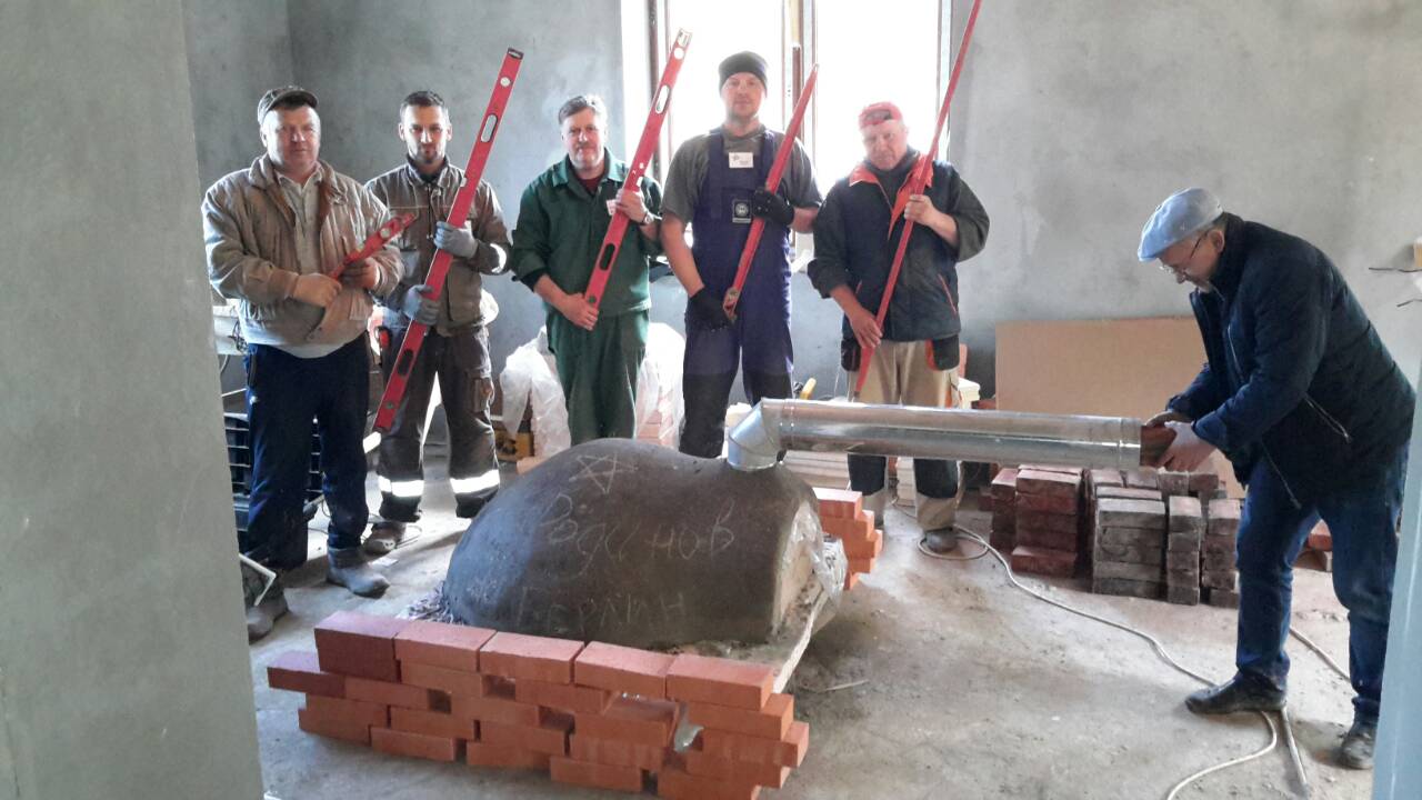 Особая благодарность нашему Главному – Вячеславу Родинову. Еще раз подтвержден тезис, что строительство печи это не тупая кладка кирпича строго по проекту, а настоящий творческий процесс. Он научил нас не боятся отступать от стереотипов, искать новые пути, постоянно усовершенствовать конструкцию. Ведь печь должна быть не только эффективной как конечное изделие, но и технологичной при ее постройке.