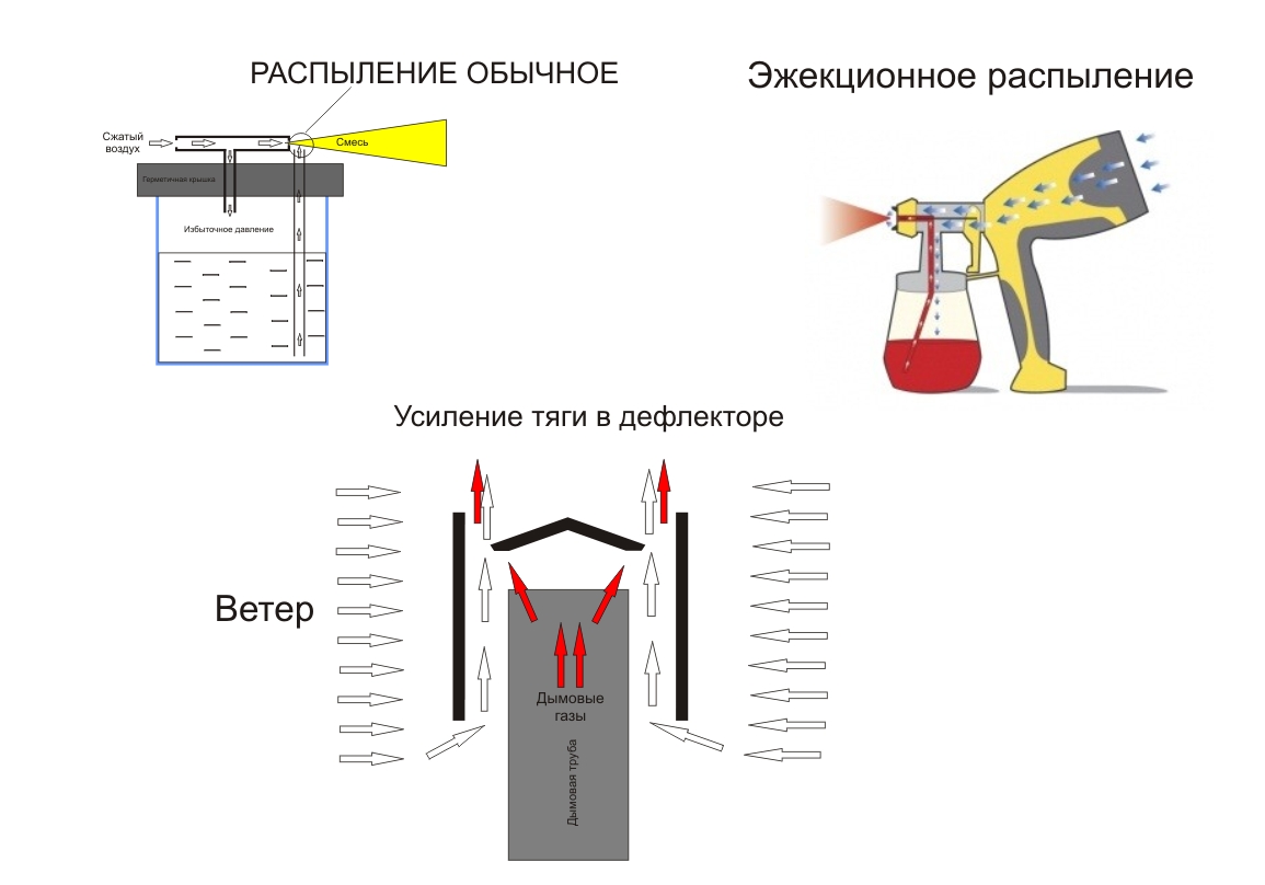 Действительно, на эффекте эжекции основано действие многих устройств для создания газовоздушных смесей (горелки, форсунки, распылители, смесители...). Но к нашему вопросу это никакого отношения не имеет.